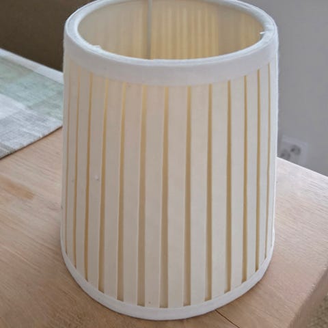 Myydään pieni pöytävalaisimwn varjostim. Väri valkoinen. Halkaisija 14cm, korkeus 11cm