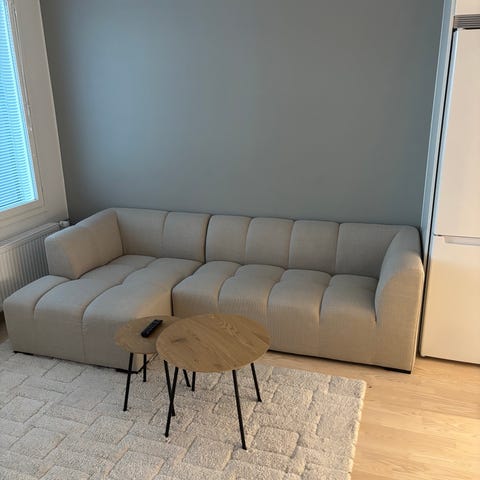 Erittäin siistikuntoinen divaanisohva pois isomman tieltä. Päälliset juuri pesty ja käsinojat pesty tekstiilipesurilla. Selkänojatyynyt käännettävät, toisella puolella nappi ja toisella ei. Divaanin puoli myös vaihdettavissa.