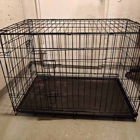 Metallinen koiranhäkki musta väri, sopii koirien turvalliseen ja rajattuun tilaan. Käytetään sisätiloissa, helppo puhdistaa ja koota. Koko 122x80, korkeus 70.