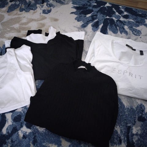 Miellyttävää materiaalia oleva "tuplapaita", eli "valehelma". Kokolapussa merkintä L, mutta minusta paremminkin kokoa M tai sitten hoikka L.