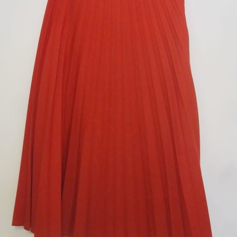 Vyötärö 1/2 mitta n. 37 cm (kts. kuva). Pituus n. 64 cm. Takana vetoketju.