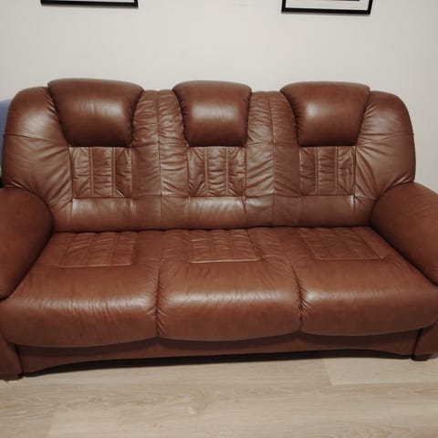 Myydään kuvan mukainen Pohjanmaan valmistama kahden istuttava nahkasohva