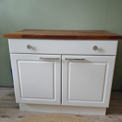 Itse ostettu valmiiksi maalattuna liukuovellinen senkki. Ollut käytössä kenkähyllynä. Kaapin sisäosa on jaettu kahteen osaan ja molemmilla puolilla on sisällä yksi hyllylevy.