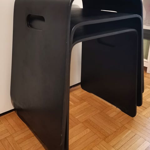 Kätevä pinottava Vilma jakkara valmiiksi kasattuna. Materiaali massiivipuuta. Heti mukaan!