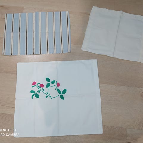 Lasten tyynyihin liinoja. Koot noin 40 x 50 ja hiukan isompia osa. Ehjiä käytettyjä. Kaikki yhteensä 5e. Nouto Villähde