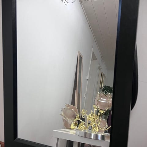Myydään kaunis metsänvihreä seinäpeili ja pieni pöytä mustalla lasitasolla. Pöytä kiinnitetään seinään ruuvaamalla.