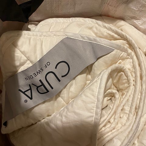 Puuvillapintainen 9 kg painava painopeitto 150x210 cm. Pellavaa.