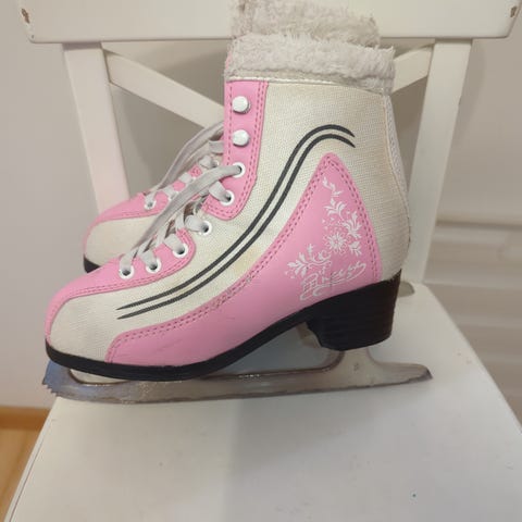 Pieneksi jääneet luistimet koossa 31. Toisessa luistimessa kulumaa etuosassa, joka näkyy kuvassa.