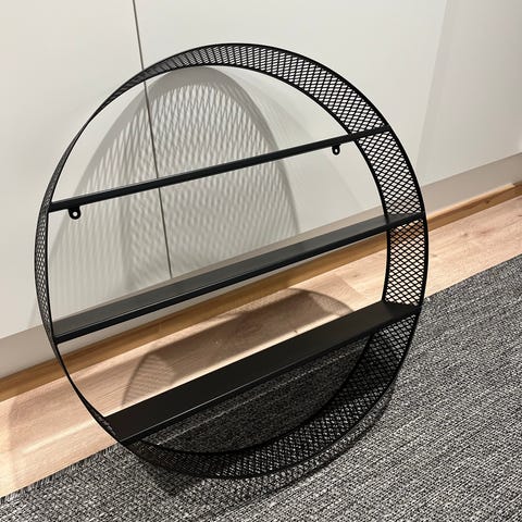 Casa-seinähyllylle voit asettaa esille kauneimmat koriste-esineet tai käyttää sitä vaikka kukkahyllynä. Hyllyn halkaisija on 60 cm, runko on mustaa terästä ja hyllylevyt ovat luonnonväristä puuta.