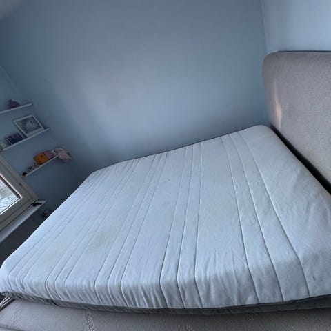Myydään jyhkeä Ikea patja. Patjaan kuuluu mukava memory foam sijauspatja. Yksi päällyksen kulma likaantunut. Koko päällinen on irroitettava ja pestävä.