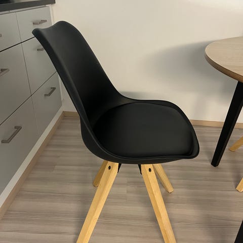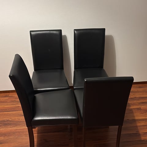 Aitoa nahkaa olevat ruokailuryhmän tuolit pientä putsausta vailla erittäin hyvänkuntoiset.