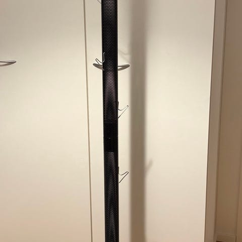 Tyylikäs ja tukeva Venla-pystynaulakko. Metallivartinen naulakko sopii pieneen tilaan. Naulakon korkeus on 170 cm ja jalan halkaisija 30 cm.