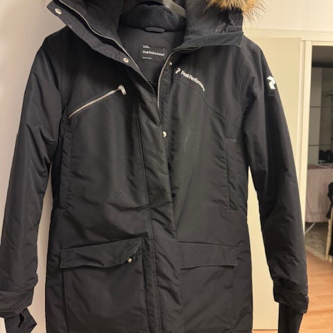 Myydään pari kertaa päällä ollut Peak lämmin talvitakki. Hihoissa lumilukot peukaloaukoilla, ulkopuolella 3 vetoketjutaskua ja 4 nappi/tarrataskua + sisäpuolella povitasku. Väri musta ja tehosteväri vetoketjuissa pinkki. Hupun karva irrotettavissa.