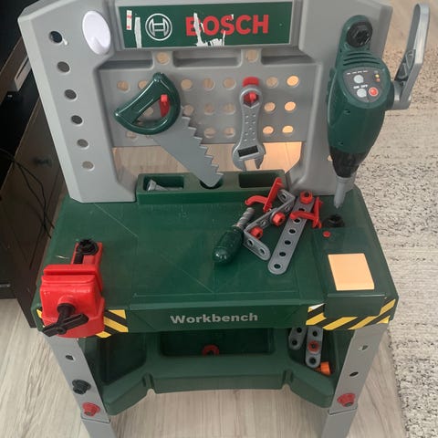 Myydään Boschin työpöytä. Kaikki kuvissa näkyvät lelut mukaan eli pari porakonetta (toinen toimii suoraan, toinen varmaan vaatii uudet paristot) ja ruuveja, nauloja, pihdit, jakoavain, vasara yms. Nouto Korkinmäestä, ei kotieläimiä tai tupakointia.