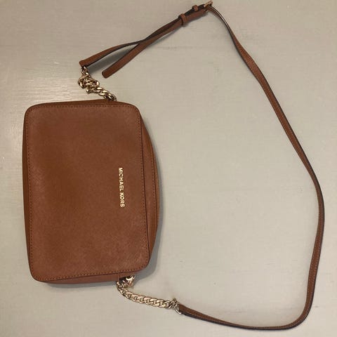 Michael Kors Nahka Olkalaukku naisille. Laukku on valmistettu nahasta ja siinä on sinivalkoinen kuviointi. Varustettu säädettävällä olkahihnalla ja metallisilla yksityiskohdilla. Sopii arkikäyttöön ja erilaisiin tilaisuuksiin.
