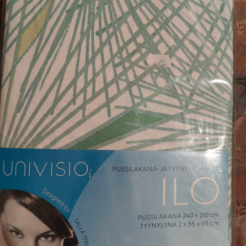 Myydään kuvien mukainen, avaamattomassa paketissa oleva Hemtexin pussilakanasetti, jossa turkoosin sävyinen delfiinikuosi. Pussilakanasetin todellinen väri vastaa aika hyvin kuvia. Normaali aikuisen koko, pussilakana 150 x 210 cm ja tyynyliina 50 x 60 cm, materiaali 100 % puuvilla. Käy vaikka lahjaksi, pakkaus on siisti.