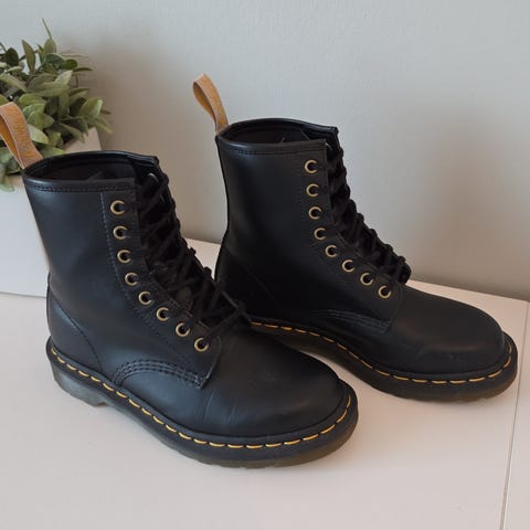 Vähän käytetty Dr. Martens saappaat, nilkkurit, koko 38. Väri musta. Valmistettu nahasta. Koron paksuus 8,6cm. Eläimetön koti. Nouto Oulu, Hiukkavaara. ToriDiili.