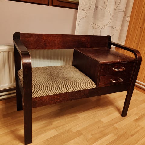 Myynnissä kuvien mukainen puhelinpenkki ollut meillä käytössä eteissä, mutta nyt jäänyt tarpeettomaksi. (Kissatalous) Leveys. 97cm, pituus44cm, korkeus 78cm. Lokeroiden sisämitat pituus 34cm leveys 29cm. Hintapyyntö 30€ nouto Kokkolan keskustasta omat kantajat mukaan.