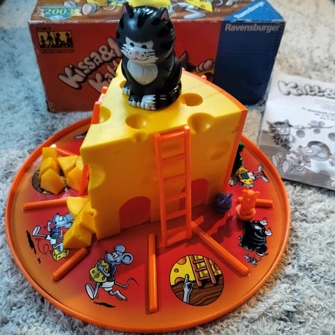 Ravensburger Kissa & Hiiret on lautapeli, jossa pelaajat liikuttavat pelinappuloita juuston muotoisella pelilaudalla. Peli sopii lapsille ja perheille viihdyttävään ajanviettoon. Vain nouto.