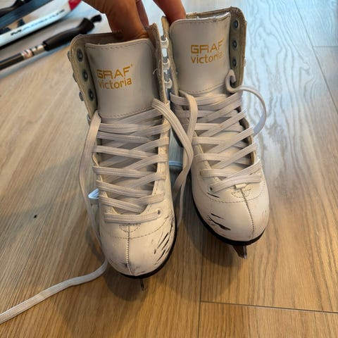 Graf Victoria lasten kaunoluistimet, koko 31. Ulkopinnassa joitain teristä tulleita viiltoja/kolhuja. Muutaman kerran luisteltu teroituksen jälkeen.