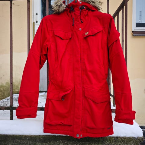 Myydään erittäin vähällä käytöllä ollut punainen Fjällrävenin parkatakki. Takki on ehjä, tahraton ja kaikki vetoketjut, nepparit yms. toimivat. Ei tupakointia tai muita hajuja. Kunnoltaan vastaa siis uudenveroista.