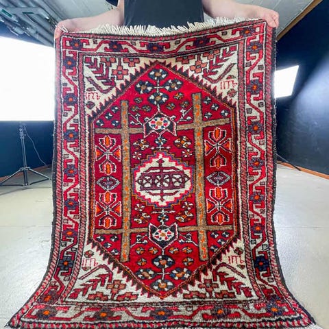 käsinsolmittu itämainen aitomatto villamatto vintage persialainen aito villa hamadan punainen oranssi geometrinen pitkä käytävä matto käsinkudottu käsin käsintehty käsityö antiikkimatto vintagematto helsinki helsingissä
