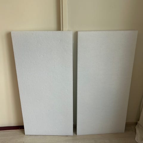 Myydään 5kpl vaaleanharmaita turpeesta tehtyjä äänieristelevyjä.