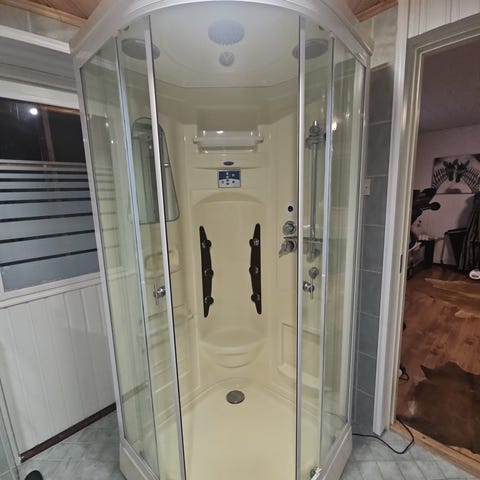 Suihkukaappi kulmamalli lasiovilla