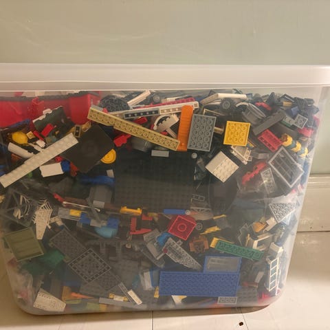 Sekalainen laatikollinen Legoja vuosien varrelta. Seasta löytyy ainakin Lego City sarjan legoja ja monia auto aiheisia osia.