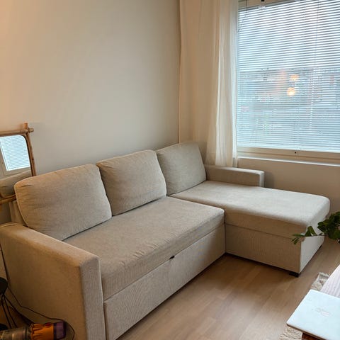 Reilun vuoden käytössä ollut divaanivuodesohva - myydään, jos saadaan myytyä, ulkomaille muuton takia, mutta jos ei, niin pidämme.
