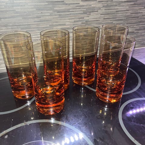 8kpl. kuin uudet, virheettömät, kultareunus, korkeus 15cm, halkaisija 11cm (myydään vain koko settinä)