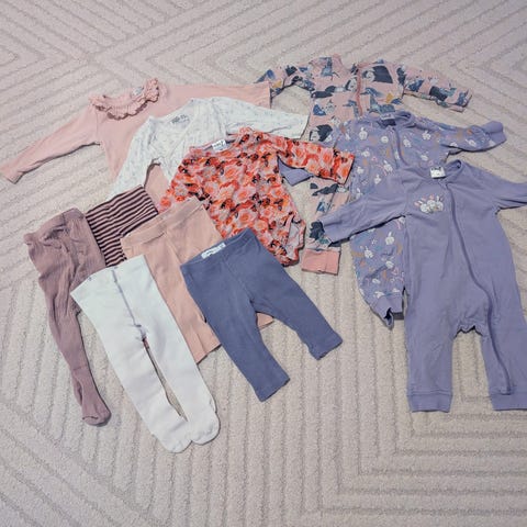 Name-Itin ja Ma-ian vaatteita. Kukallinen mekko kokoa 70cm