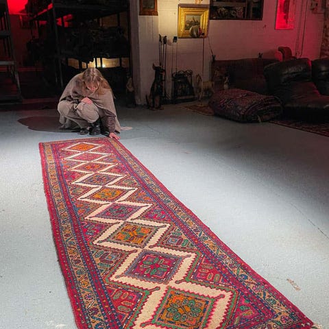 käsinsolmittu itämainen aitomatto villamatto vintage persialainen aito villa hamadan pitkä oranssi ruskea pitkä matto käsinkudottu käsin käsintehty käsityö antiikkimatto vintagematto helsinki helsingissä