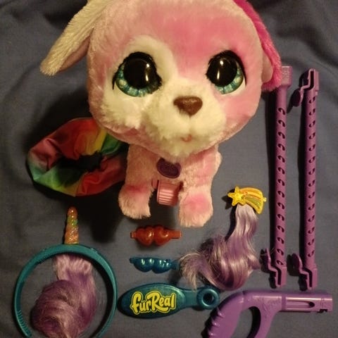 Myydään käytetty FurReal koira lelu eteenpäin seuraavalle. Toimii ja tavarat mukaan.