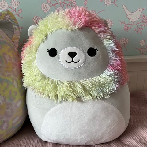 Squishmallows pehmolelu, väriltään monivärinen ja pehmeä materiaali. Käynyt juuri pesussa. Ei käytönjälkiä.