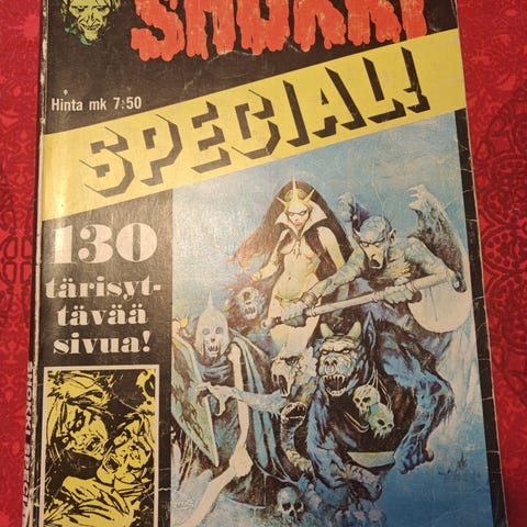 Sarjakuva Shokki 16 Painos sisältää 128 kauhutarinaa. Mustavalkoinen sarjakuva, jossa on useita lyhyitä kauhutarinoita. Sopii sarjakuvien keräilijöille ja kauhugenren harrastajille. Hyväkuntoinen ja ehjä. MB ja lähetys kirjekuoressa+ postimaksu.