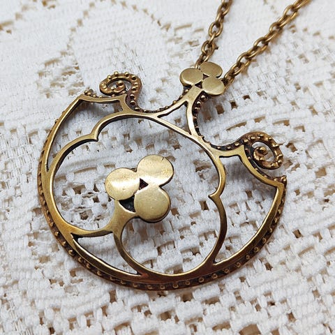 Karl Laineen suunnittelema pronssinen riipus. Riipuksen koko 4 cm x 4.7 cm. Ketjun pituus 68 cm.