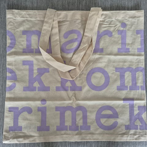 Käyttämätön Marimekon liila logokassi.