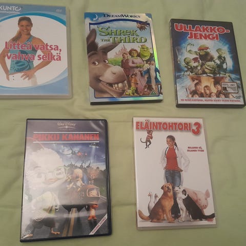 Kasa piirrettyjä ja lasten dvd-elokuvia (3e/kpl). Esim: