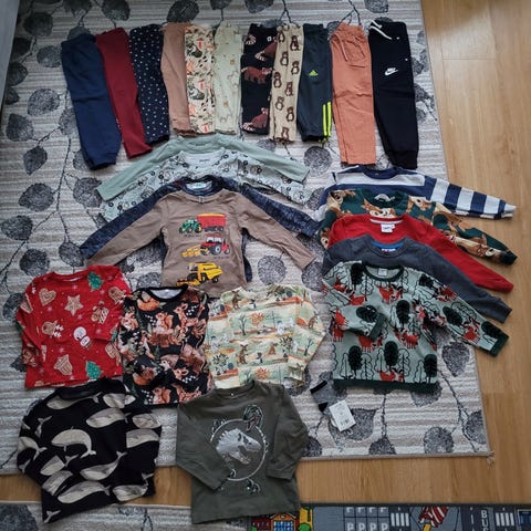 Pojalle iso vaatepaketti koossa 92-104 muutama 110, mutta pidetty 104 koossa.
