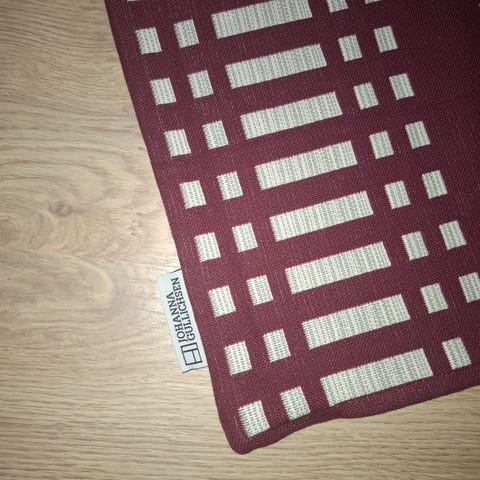 Ompelijan tekemä 50x50 tyynynpäällinen vetoketjulla. Vetoketju keskellä takana piilossa. Kuosi Nereus, väri viininpunainen.