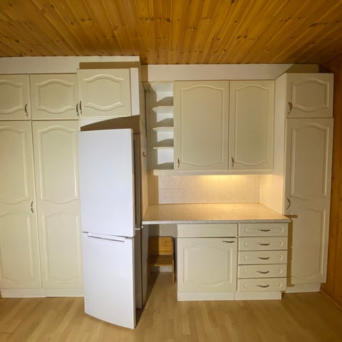 Yläkaappi jääkaapin päälle.