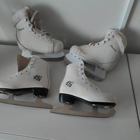 Luistimissa käytön jälkiä, mutta hyvin toimivat ja helpot laittaa jalkaan.