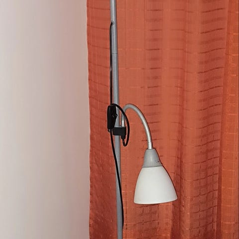 Kuvan lampussa kaikki muu ok., vain katkaisijat poistettu. Toimii siis tyyliin töpseli seinään. Voi myös laittaa joko kaukosäädöllä toimivaan pistokkeeseen tai jatkojohto on, jossa katkaisin. Polttimotkin on lampussa kiinni valmiina. Kaunis lamppu, ei haluttaisi viedä kierrätykseen. Pikkurahalla saa hakea hyvännäköisen lampun, jossa lukuvalo vapaasti suunnattavissa.