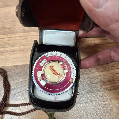 Vintage valotusmittari kameralle – kotelolla ja kaulanauhalla