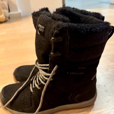 Myydään todella vähällä käytöllä olleet talvikengät. Värinä kaunis tumman lila.