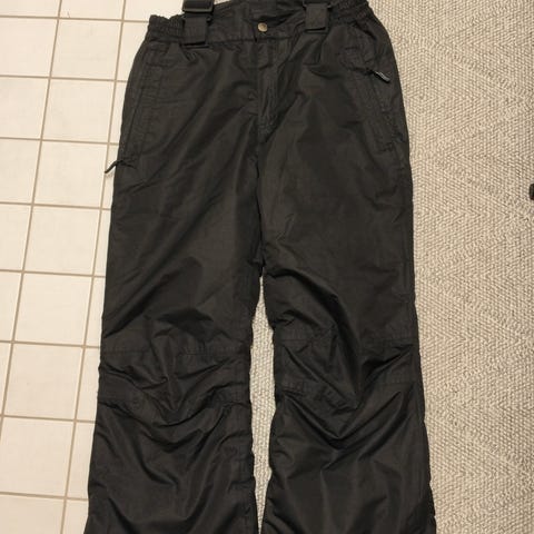 Icepeak toppahousut kokoa 152 cm. Mielestäni napakka mitoitus. Toisessa polvessa pientä kulumaa (kuva).
