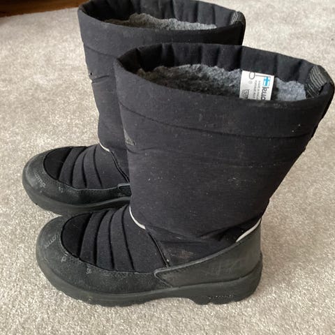 Lasten talvikengät, koko 36, unisex-malli. Kengät ovat mustat ja valmistettu kestävistä materiaaleista, jotka soveltuvat kylmiin olosuhteisiin. Kengissä on lämmin vuori ja pitävä pohja, jotka tarjoavat suojaa ja mukavuutta talvikäyttöön.