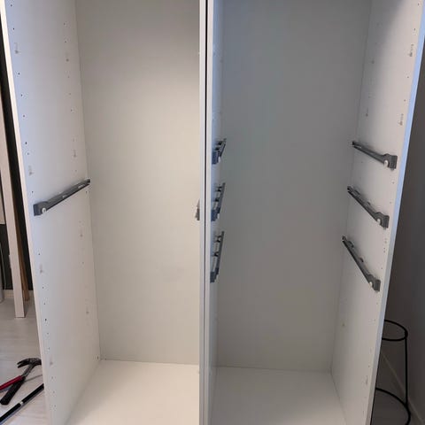Myydään kaksi kappaletta kesäkuussa ostettuja Ikean 40x37x200cm kaappeja Veddinge ovilla. Toisessa kaapissa metalliset pyykkikorit. Ollut kodinhoitohuoneesa pyykkikaappeina. Lähes uudenveroisessa kunnossa pl. pistorasialle tehty reikä toisen kaapin taustalevyssä.