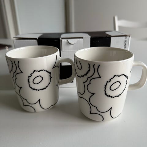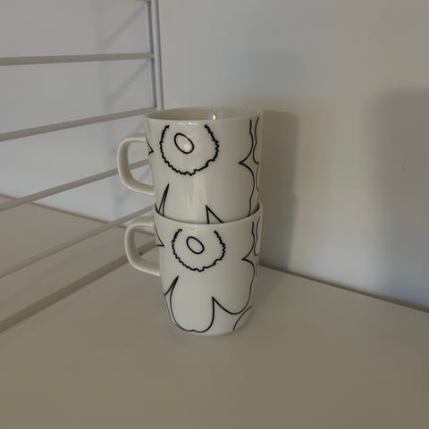 Myydään tarpeettomana lähinnä kaapissa säilytetyt marimekon unikko mukit 4kpl. 0,4dl. Kaikki yhdessä 70 euroa.